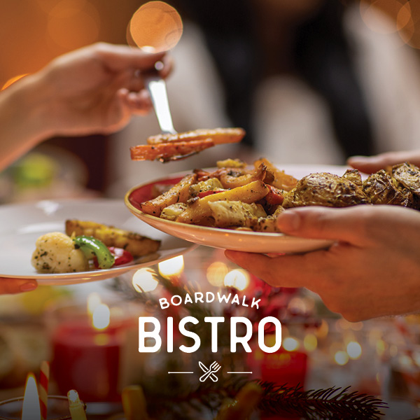 Round out the celebrations with Christmas dinner at Boardwalk Bistro, where you can relax over an à la carte menu of crowd favourites, from carvery classics to bistro specials — all served with stunning waterfront views. Whether it’s breakfast, lunch, or dinner, Boardwalk Bistro is the perfect place to share the joy of the season with family or small groups.