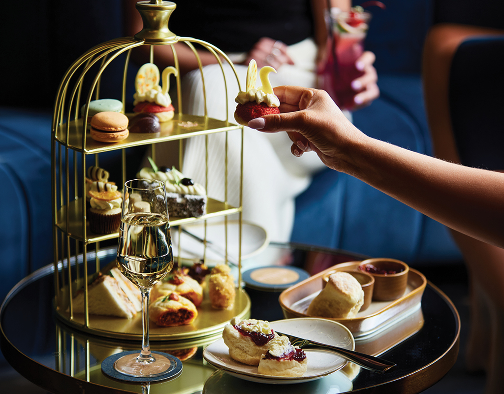 Start with a glass of sparkling on arrival, followed by savoury bites such as truffled chicken brioche and Tasmanian rock lobster rolls. Warm scones then make way for exquisite sweets, including strawberry shortcake and handcrafted petit fours.